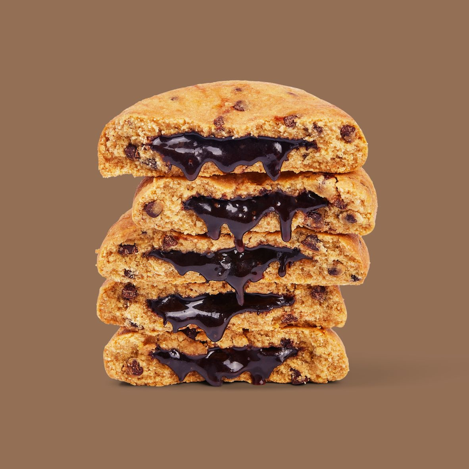 Gooey Filled Cookie is a tasty, filling snack. With a soft centre and gooey filled centre, each loaded with a whopping 20g of protein and dark chocolate flavoured chips to satisfy your cookie cravings.
