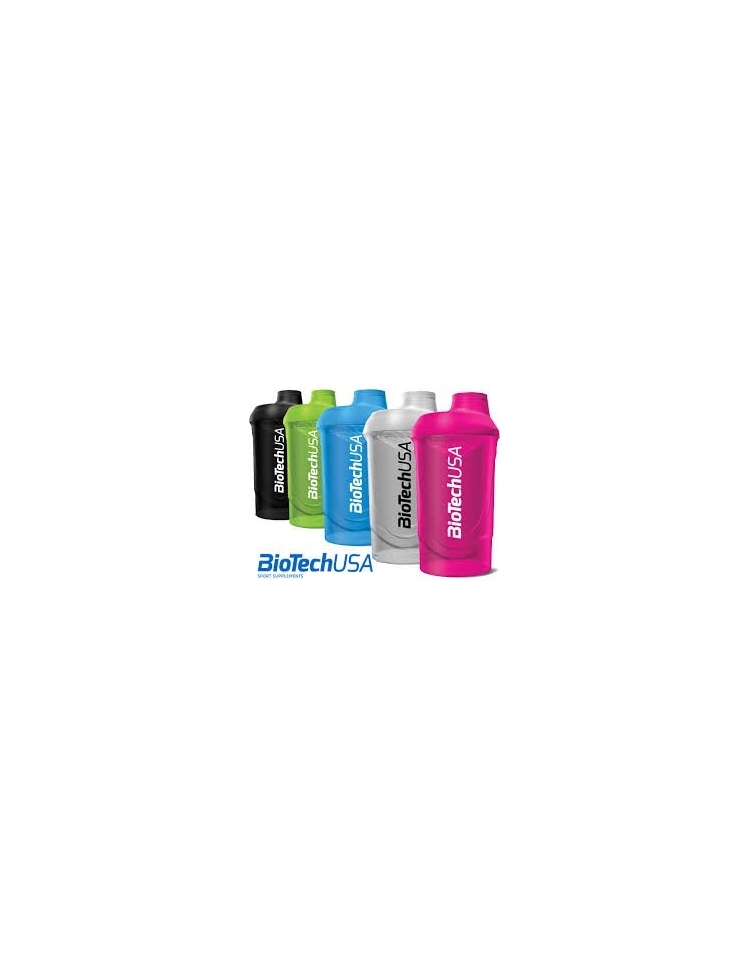 Green, cyan, magenta, black, white 750 ml BioTech USA Rocket Bottle, with transparent measuring line..