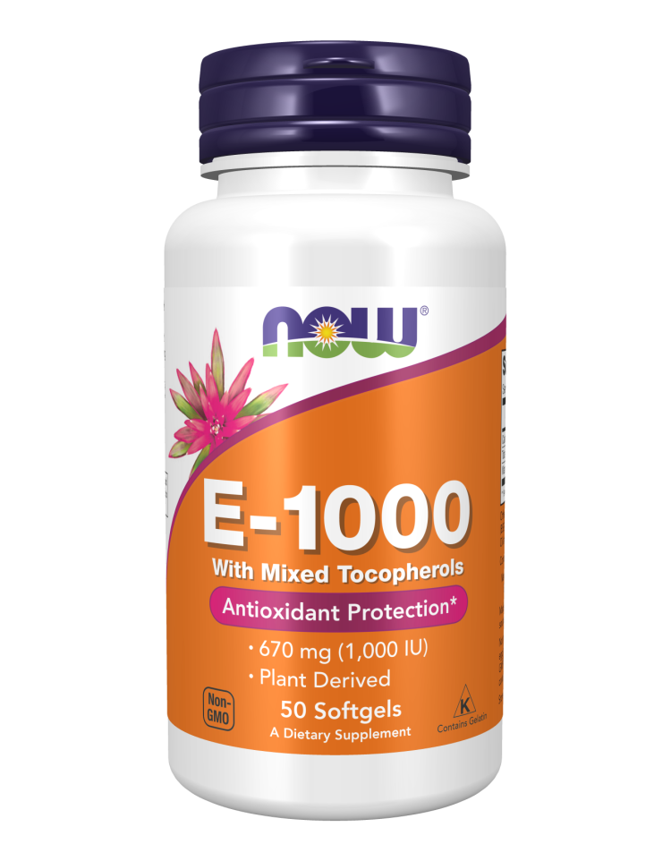Η βιταμίνη Ε αποτελεί μία ομάδα συστατικών που περιλαμβάνουν τις τοκοφερόλες και τις τοκοτριενόλες. To σκεύασμα Ε-1000 IU Mixed Tocopherols της NOW περιέχει ένα μίγμα α, β, γ και δ-τοκοφερόλης που συνιστούν μία φυσική μορφή βιταμίνης Ε με ισχυρή αντιοξειδωτική δράση.